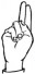 На ћирилици написано ЛАБУДА ЧЕРКОВИЋ састоји се из 14 слова [?]. Исписано ћириличном једноручном азбуком за глувонеме: